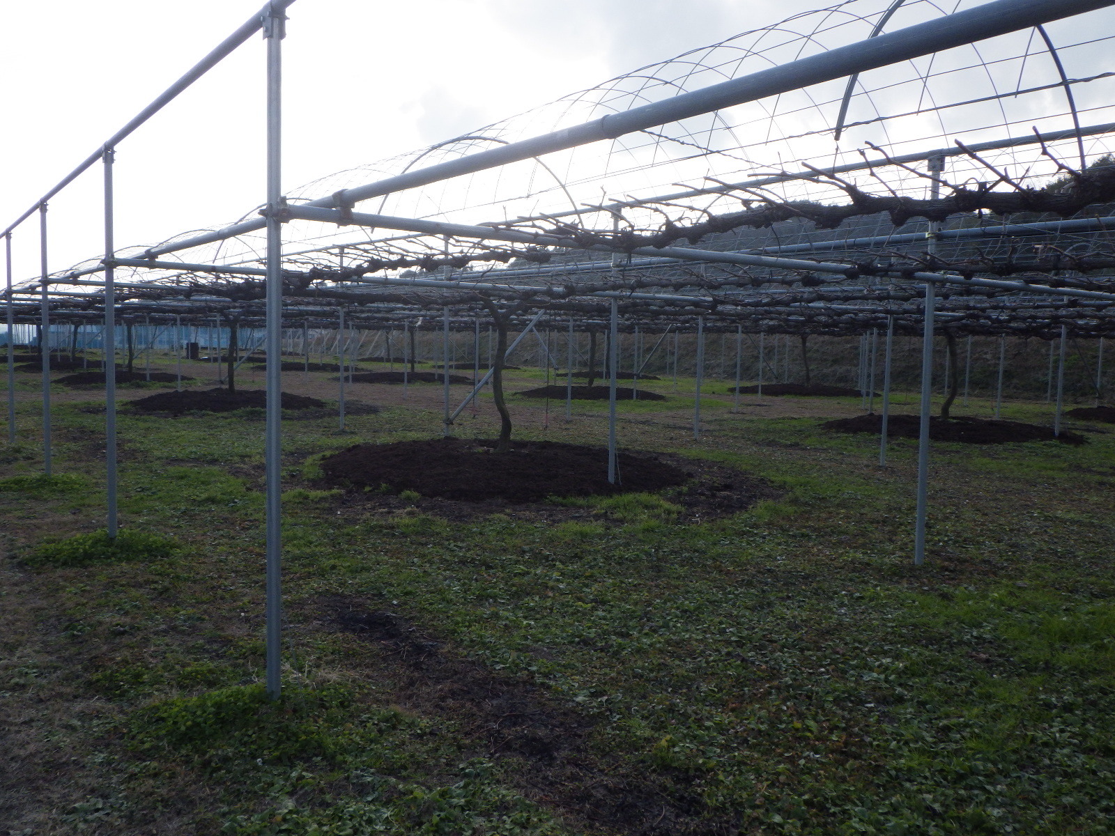 木の根元にある黒い山は、堆肥で散布途中です・・・・・